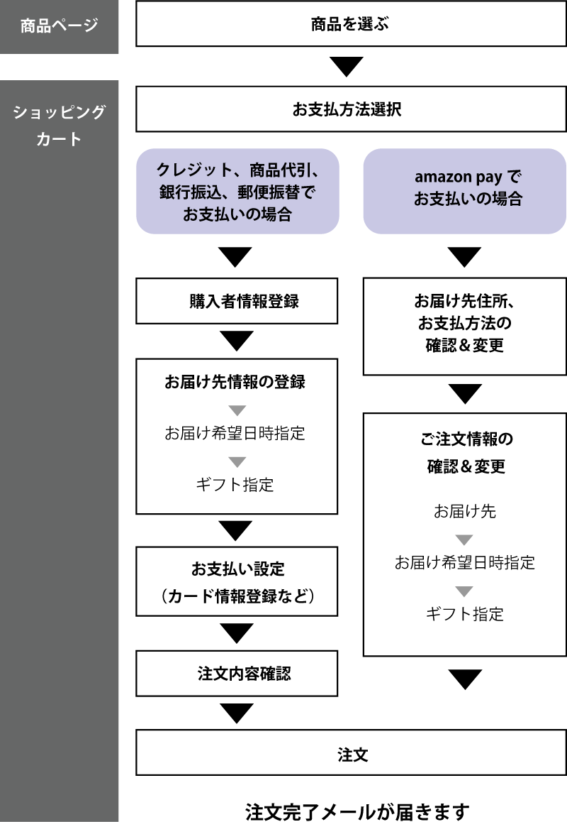以下のステップでお買い物いただけます。それぞれの画面について、詳しくご説明いたします。