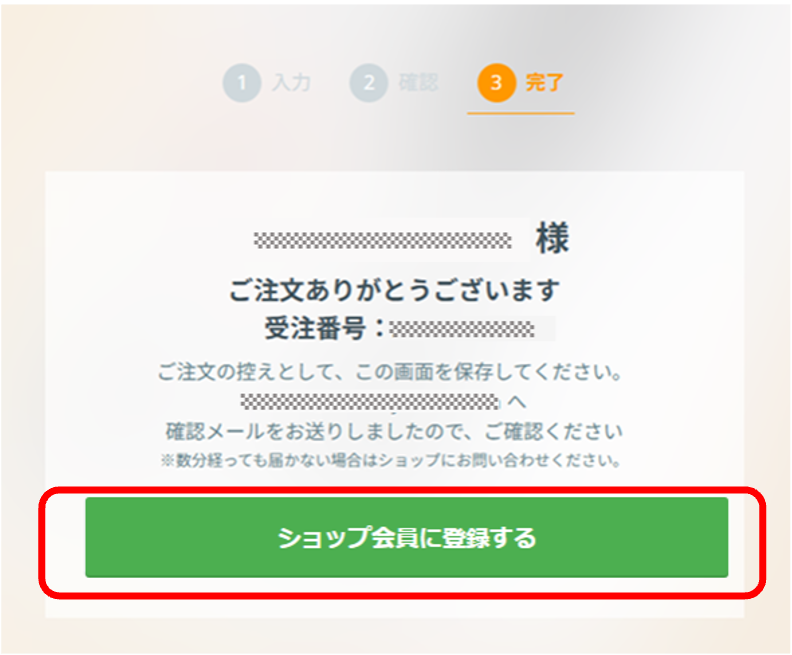 また、初回お求めの場合は、会員登録をせずに購入した場合も、購入完了画面で「ショップ会員に登録する」ボタンを押下することで会員登録が可能です。