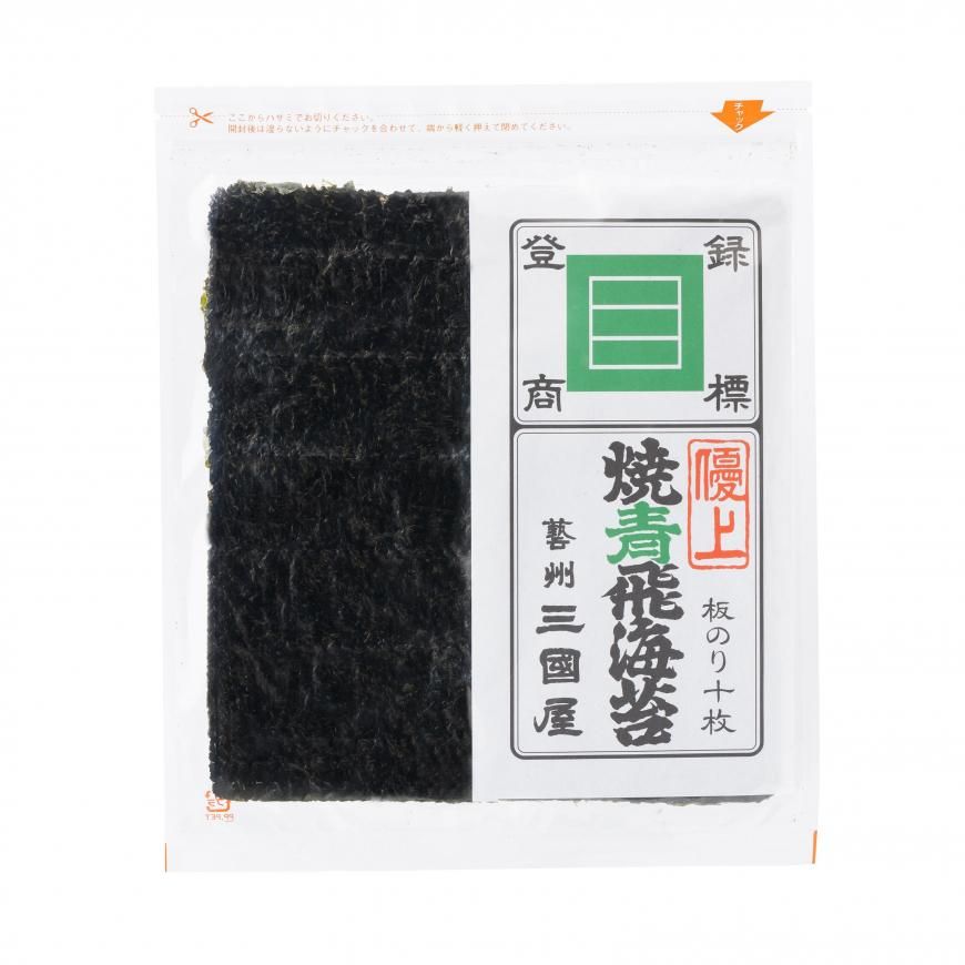 有明海産の初摘み海苔にアオサノリが混ざっており、ほのかなアオサの風味が楽しめます。