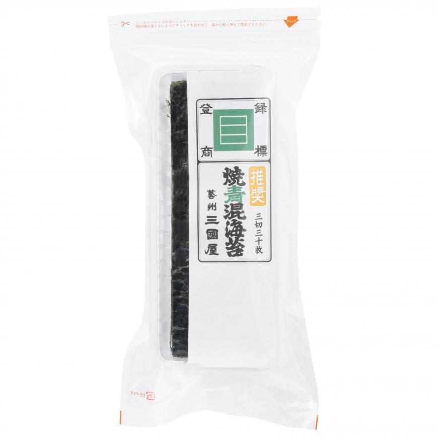 「あおまぜのり」と読みます。 寿司職人も御用達の極上海苔「推奨」グレードに、アオサが混ざっている希少品。 磯の香りがとても華やかです。 内容量:3切30枚 板のり10枚 産地:国産