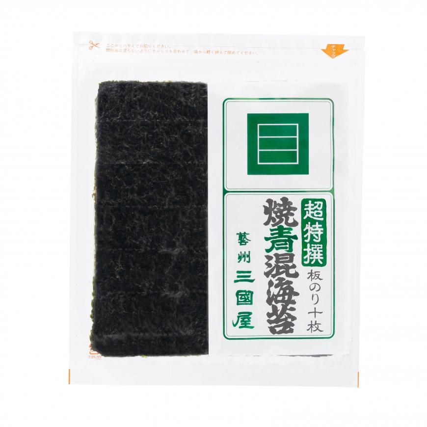 「あおまぜのり」と読みます。 寿司職人も御用達の極上海苔「超特撰」グレードに、アオサが混ざっている希少品。 磯の香りがとても華やかです。 全国で採れる青混のなかでも、弊社で一番高く評価した海苔です。 内容量:板のり10枚 産地:国産